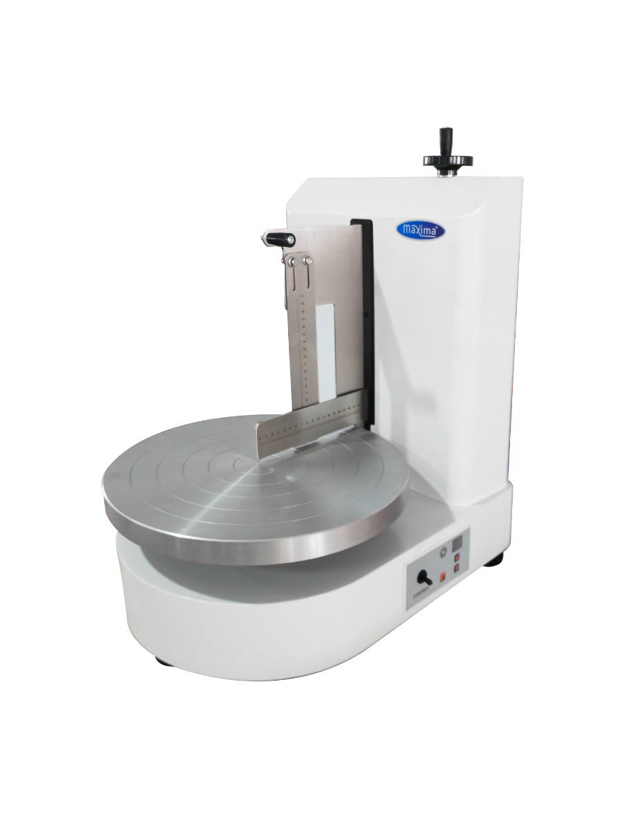 Lissez facilement vos gâteaux avec cette machine à décorer les gâteaux. Le gâteau tourne uniformément sur une plateforme, tandis que les couteaux verticaux et horizontaux assurent l'élimination de tout excès de glaçage, créant ainsi un côté et un dessus nets. La machine est également dotée d'une vitesse réglable de 40 à 225 tours/minute et peut être réglée par incréments de 10 étapes. Le plateau tournant peut tourner dans les deux sens.